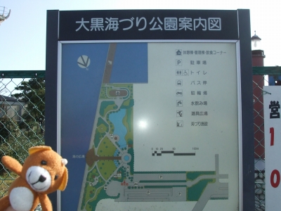 で、大黒町の海づり公園に行ってみるも、荒天で今日は閉園だって。