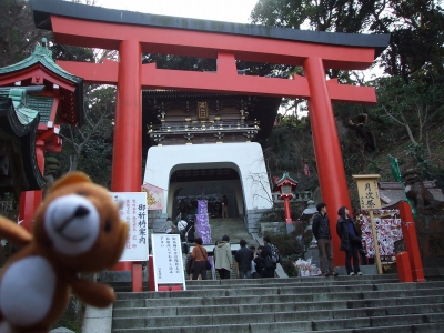 その後、江ノ島に向かって、またまた鳥居の前で記念撮影だよ。